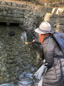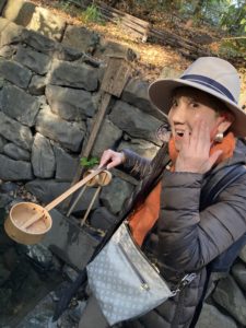 まず泉の中にある石に向かって