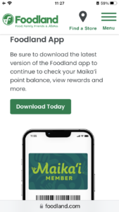 1.スマホでフードランドのホームページから「Maika’i Member」を選ぶ