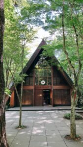 拠点から5分くらいの徒歩圏内に軽井沢高原教会
