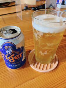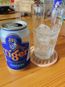暑くてすぐにビールがぬるくなるからか、ジョッキに氷を入れて飲むのがベトナム式ビールの飲み方。